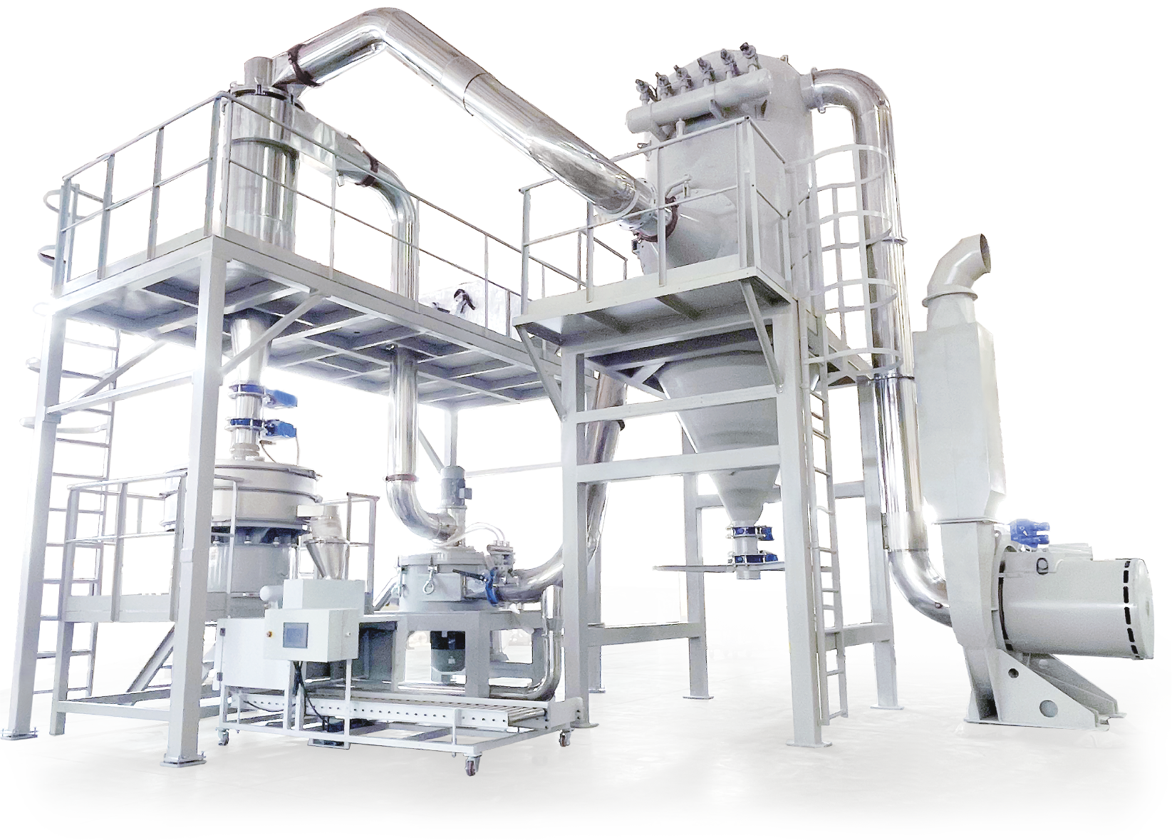 ACM系列磨粉系統ACM系列立式磨粉機由高速空氣分級磨、旋風分離器、旋轉篩(振動篩)、超細粉集塵箱和風機構成。具有高速粉碎、氣流分級、雙旋風分離、篩粉及超細粉收集等功能,噪聲≤80DB。粒徑范圍 18um-60um可自由調節,粒徑分布最佳。可用于顏料、鈣粉、碳粉、藥品以及食品的粉碎,是固體粉末的最佳粉碎設備。該系列磨粉機由國際授權機構進行了ATEX和PSR11防爆性能評估,具有優異的防爆設計和防爆性能。