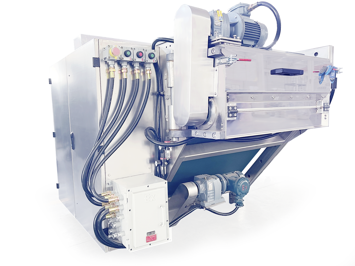 該系列壓片機(jī)結(jié)構(gòu)緊湊,由擠壓輥、超大直徑的冷卻輥、高強(qiáng)度德國(guó)輸送帶和破碎輥組成。新結(jié)構(gòu)的輸送帶可在幾分鐘內(nèi)從側(cè)面取出清潔或者更換,破碎機(jī)構(gòu)可旋轉(zhuǎn)打開(kāi),方便清潔。